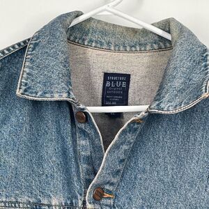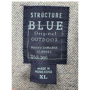 Vintage men’s size XL trucker jacket by Structure. No rips or tears. Big deep side pockets and all buttons nice and tight. This has just been laundered. Some yellowing from age. Pit to pit 25.5” and length 26”.
