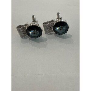 Vintage mesh cufflinks, Blue Black Rivoli Glass stones 2 pair