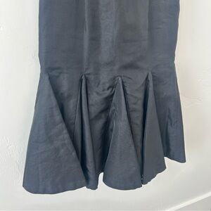This is tiny! I would say a size 0 but please see measurements! Vintage black mesh dress from the 1960s with an asymmetrical hem and mermaid cut. This midi sleeveless dress features a fit and flare silhouette, perfect for evening occasions with an Art Deco look.