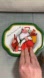 This is a great set of two pieces of vintage metal tin Christmas items. Both in wonderful condition, especially considering the age. The first is a square tin from.Suzy’s Zoo 1979. It features for adorable animals in holiday wear on each side. One is a frog like a Jack-in-the-Box, one is a duck in gloves, mittens and scarf, one is a turtle in mittens, bells, and snowshoes and another turtle in a ski outfit. The inside is brilliantly, gold and shiny. No rust anywhere on the can. All of the paint is in wonderful condition. There are no chips or fading anywhere on the piece. The lid comes off easily. There is a tiny bit of wear on a couple of thecorners of the red lid. I mean a couple tiny little pinprick things not noticeable. No major dents or markings.It measures 3”Wx3”Dx4”T.The other piece is a Santa tray with green trim made by JSNY. It displays Santa Claus with a sack of toys and “merry Christmas to all. There is a little bit of line dents. 6” x 8”. Both made in Hong Kong.