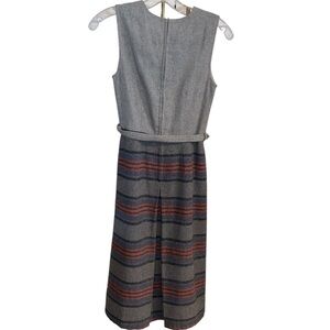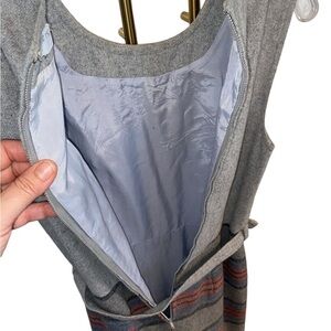 Vintage mid century 50s wool belted sleeveless grey red twee dress Fall Academia