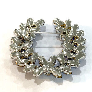 Vintage mid century brooch open wreath dark blue rhinestones pin on silvertone
