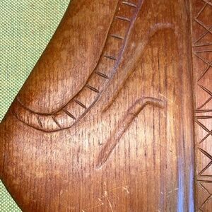 Vintage mid century carved teak wood wall art of African man and woman