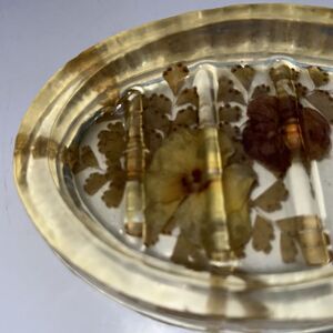 Vintage mid century lucite acrylic oval soap dish with pressed flowers