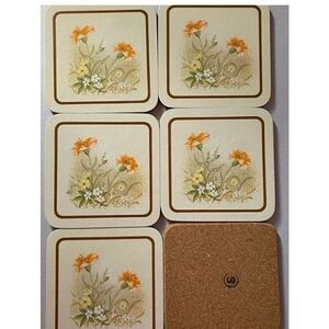 Vintage mid century modern 4 x 4, floral, cork, backing coasters