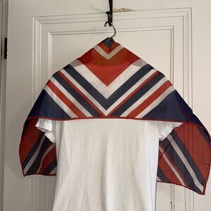 Vintage mid century semi sheer red, white & blue polyester scarf