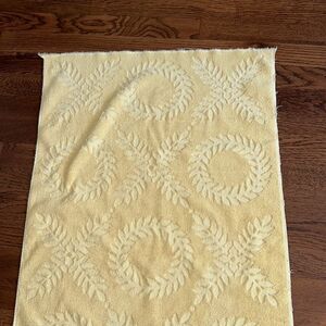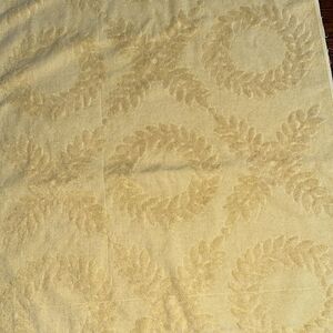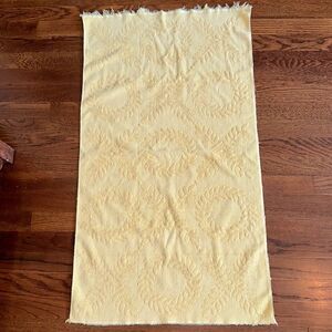 Vintage mid century yellow bath towel with raised wreath & leaf design