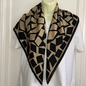 Vintage mid century mod Vera black & tan(gold) rectangle motif large scarf