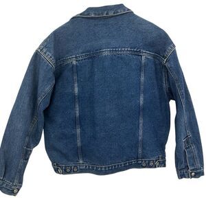 boxy oversized slightly cropped denim jacket size large. Snap closure. This jacket is in incredible condition for being 30 years old. See photos for measurements and fabric content.