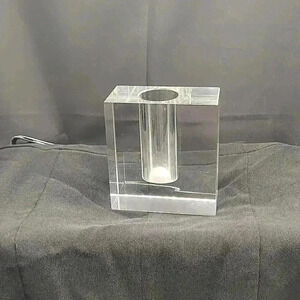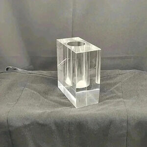 item is 4 and 1/4 in tall vintage mid-century modern glass block vase. heavy about 4 lb. unsigned so don't know the maker but these are a well-known style.