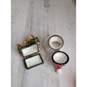 Vintage mini trinket box santa claus face bear sled figure xmas