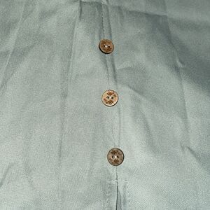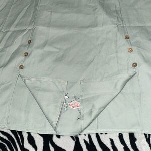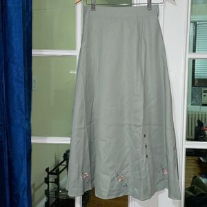 Vintage mint green front slit midi a line trad modest elegant high waisted skirt