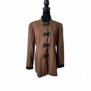 Vintage mocha brown and black velvet Trim long length blazer size 6 Frog Closure