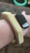 Vintage mod hexagonal cream bangle. Good vintage condition with some discoloration and light wear.