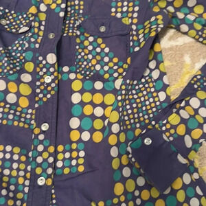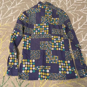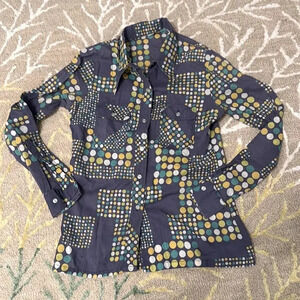 Vintage mod up our polkadot, psychedelic button-down shirt S/M