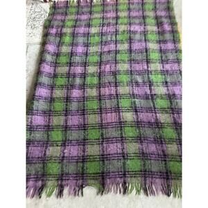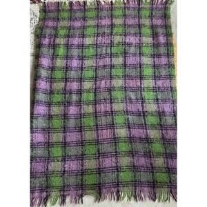 Vintage mohair blend throw blanket purple green 50x70”plaid moffat handloom