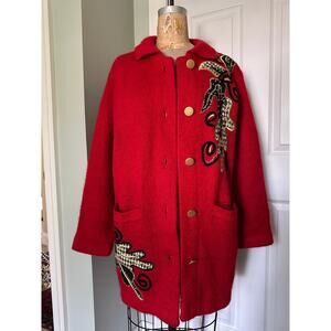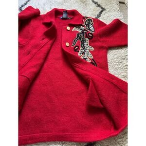 Vintage mohair cardigan sweater coat jacket red Y2K I.B. Diffusion Applique Sz S
