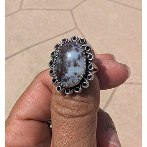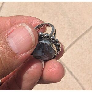 Vintage native American Sterling Silver Ring Size 5 Signed MW Dendritic Agate?