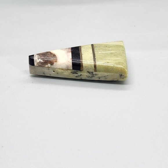 This Vintage Native American inlaid multi stone bead dangle pendant is a beautiful piece of handmade jewelry that represents the Navajo culture of the United States. The intricate design and use of multiple stones reflect the craftsmanship and heritage of the Native American people. Perfect for collectors or those looking to add a unique piece to their jewelry collection, this pendant is a stunning representation of Native American artistry and tradition.