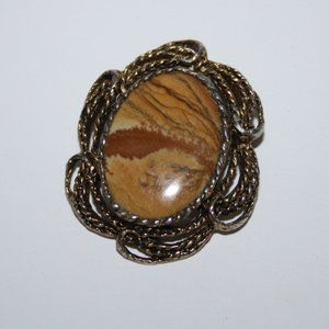 This is a beautiful vintage brooch. Stunning natural stone with gold tone.