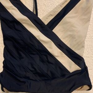 V gorgeous vintage suit- navy and white- cut really pulls in the waist with a deep v and low back