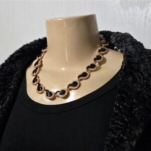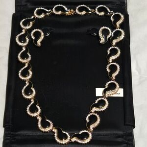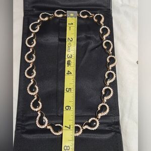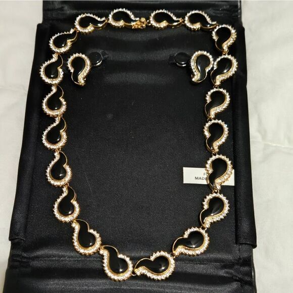 Vintage necklase Rhinestone Black Enamel Comma Link Necklace 925 estate Sale