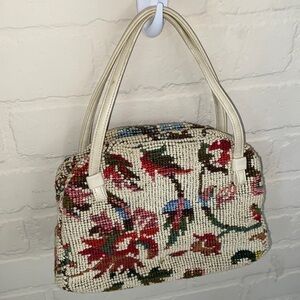 Vintage needlepoint handbag tapestry purse snap closure handbag