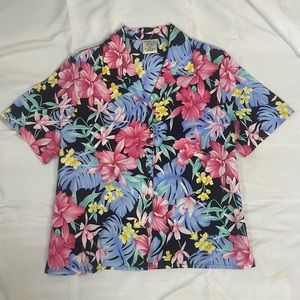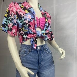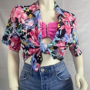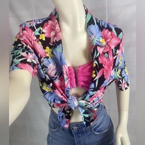 Vintage neon 80s Hawaiian button up shirt.
