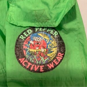 Vintage neon green windbreaker Red Pepper Active Wear graphic popover style