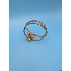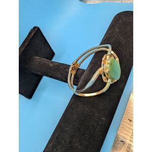 Vintage, polished, nephrite Jade, hinged bracelet. Golden color metal. Great pre-owned condition. Beautiful stone.