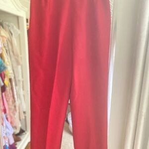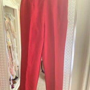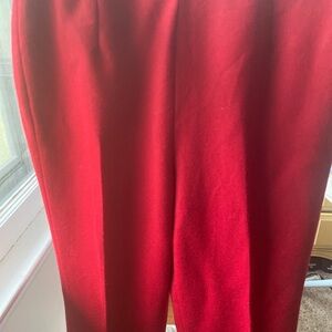 Red wool lined side elastic waist slacks, don’t know the brand. Fits like a size 6