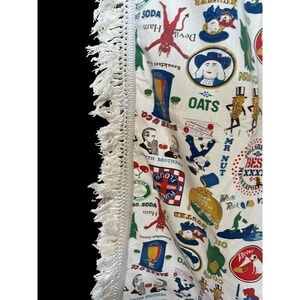 Fabric is a little thicker than regular cotton fabric. There are a smaller stains, otherwise in good condition. Please see all photos. Measures approximately 45” by 71”. Brands are spinoffs of regular known brands.
