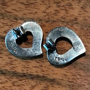 The markings/hallmarks on these medium-size sterling post earrings look like examples from Taxco, Mexico. Some tarnish. The open heart style was popularized, as I recall, by Elsa Peretti.