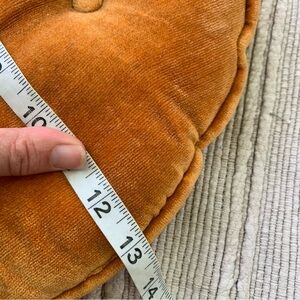 Vintage Velvet Throw Pillow Round Tufted Rusty Orange 13" 70s Good condition minimal wear. Lots of life Tags: pottery barn ll bean j c penny quilted