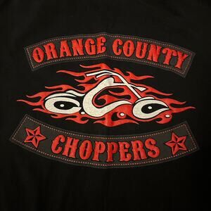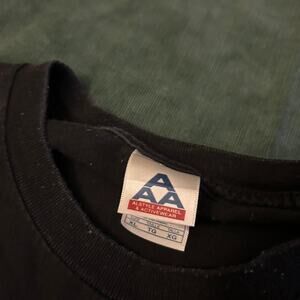 Has some wear 20 year old shirt but gives it that nice vintage look. stand out and be unique with this beautiful sleek orange stitched design.