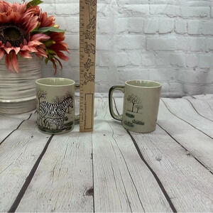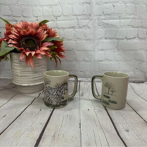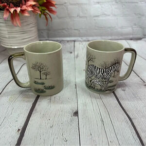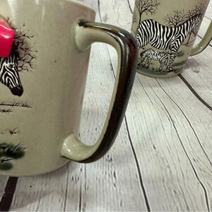 Vintage otagiri speckled mug hand painted zebra safari wildlife scene set of 2