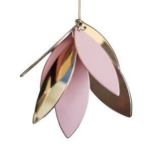 Vintage oval leaf shaped drop metal gold-tone pink statement dangle earrings