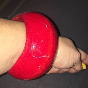Vintage oversized Handmade Wooden Bangles Set red tan Oprah’s favorite things