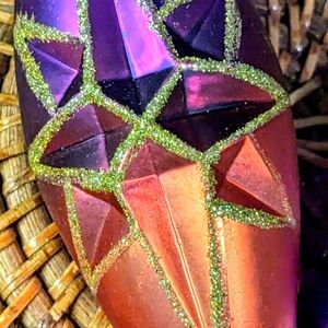 excellent condition. no chips, cracks or breaks. gorgeous pair of mercury glass teardrop Christmas ornaments with indented star designs and outlined in glitter. Dazzle this holiday season!