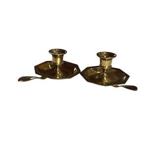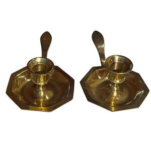 Vintage pair of solid brass octagon chamberstick candle holder w/ handle.
