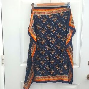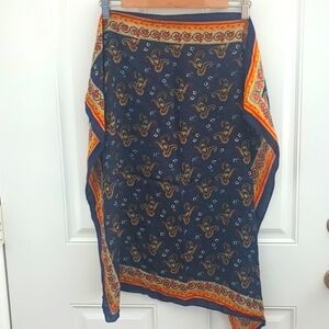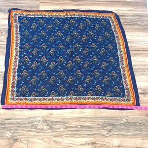 Vintage paisley print blue and orange scarf. Please note that this item is in good used condition so there may be minor imperfections such as small spots, snags, pills etc. Please see the photos.