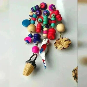 Vintage parrot themed artisan handcrafted Mexican style colorful wooden earrings