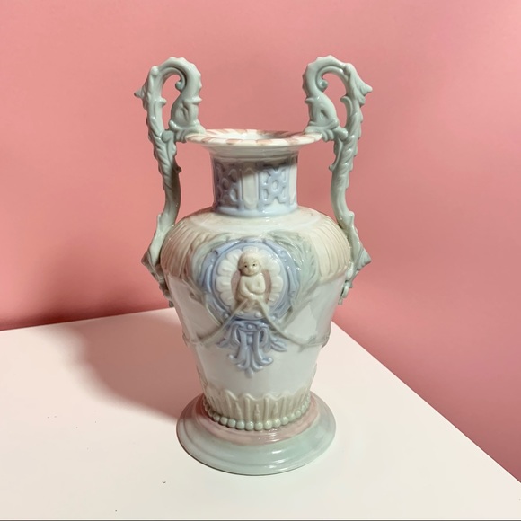 Vintage antique Victorian retro Art Deco mcm mid century modern contemporary pastel angel baby cherub vase - good vintage condition