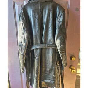 Vintage patch work 1980s black leather trench coat womens size large with belt