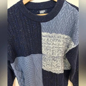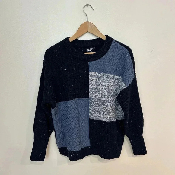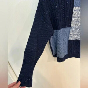 Vintage patch work cable knit crew neck cabincore sweater cotton/wool S j crew