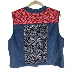 Good used condition, cotton with rayon trim, silver buttons, v neck, front flap pockets, cropped, boxy fit