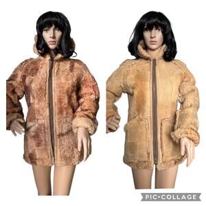 Vintage patchwork reversible shearling hooded coat pockets size small