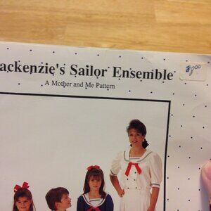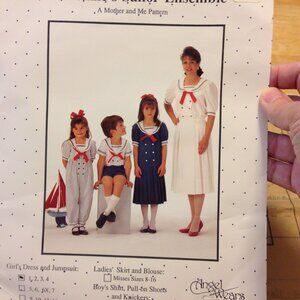 This is a mother and me sewing pattern from Mackenzie's Sailor Ensemble. This one is for the girl's dress and jumpsuit. Angel Wears vintage pattern, uncut, from 1990.