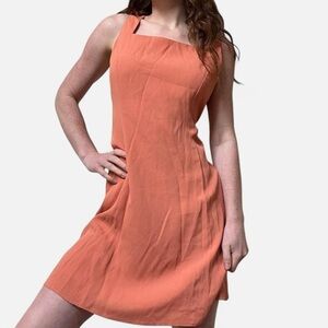 This elegant peachy orange sleeveless dress is perfect for any occasion. Its vibrant color adds a pop of style to your wardrobe. Excellent condition, smoke and pet free home.