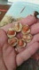 Vintage stylized flower brooch with orange- peach - cream color tumbled rocks glued on gold tone metal.